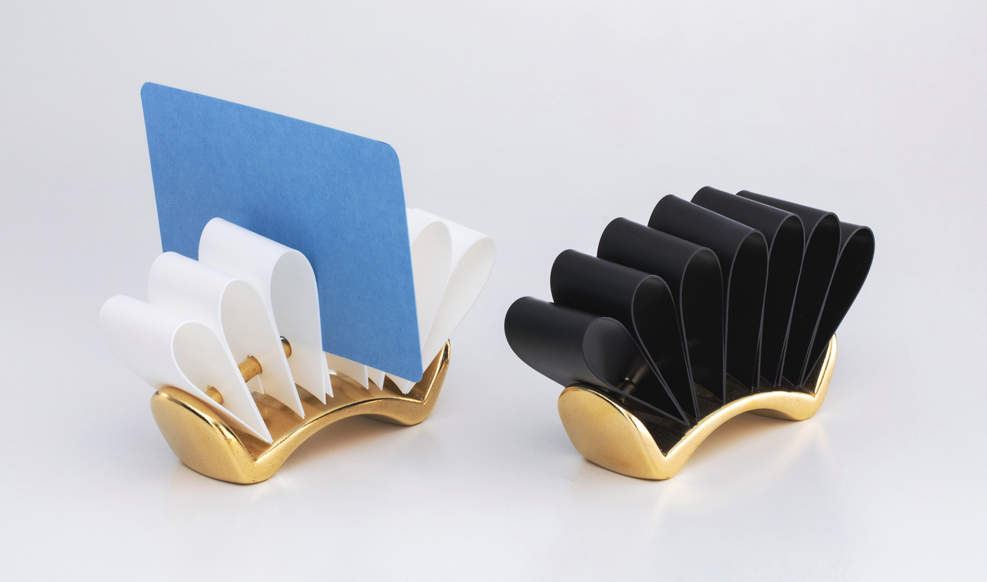 フォルムに大きなカーブをつけることで、取りやすさと視認性の良さを実現したカードスタンド。
