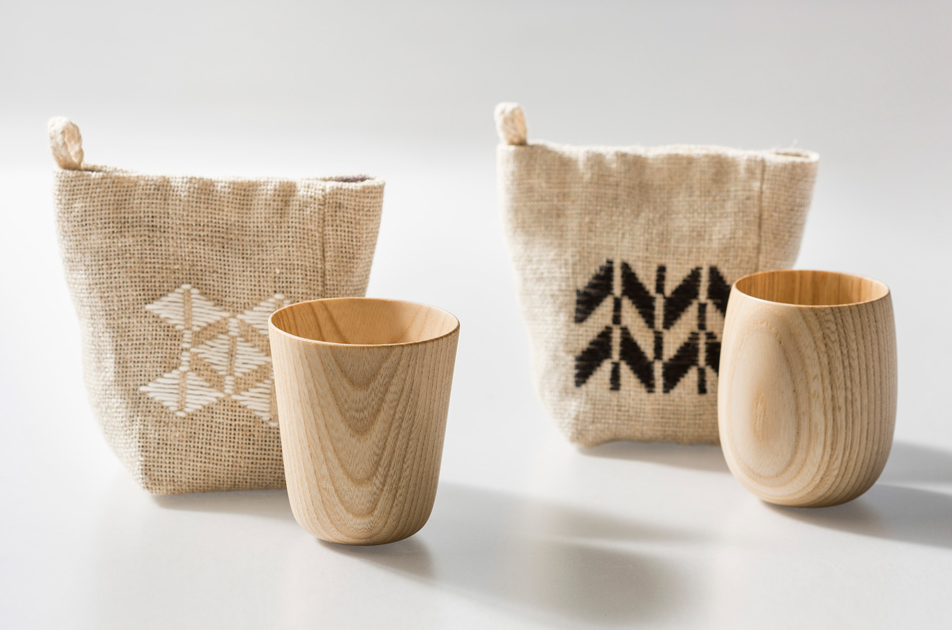 旅先や戸外でお酒や水を飲むための携帯用木製カップ。(ポーチ付)